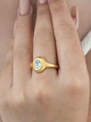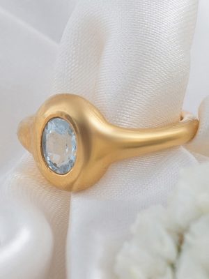 $89.00The Oval Gold Ring, meticulously crafted in 92.5 sterling silver, boasts a radiant 22K gold polish for a timeless allure. Showcasing a captivating Blue Topaz… -