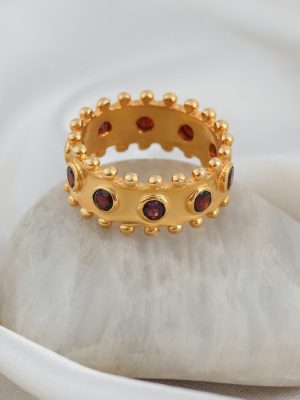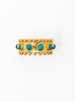 $129.00The Golden Crown Eternity Band, with its delicate beaded edge and a continuous circle of gemstones, symbolizes eternal love and timeless elegance. Available in Turquoise… -