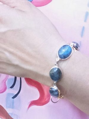 Sterling Silver Bracelet with Cabochon Gemstones – Turquoise or Pearl Variants