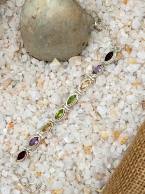 Marquise-Cut Multi-Gemstone Rainbow Charm Bracelet in 92.5 Sterling Silver – Garnet, Peridot, Citrine & Amethyst