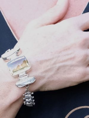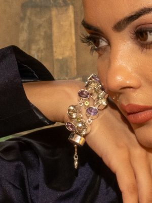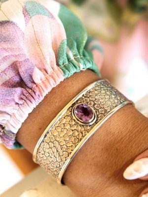 $259.00This 92.5 sterling silver signature bracelet, adorned with vibrant green and purple amethysts, is a striking handcrafted statement piece designed to captivate. Amethysts are believed… -