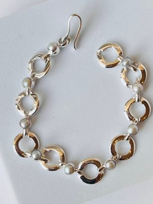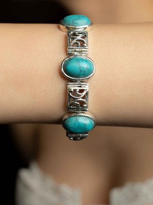 Sterling Silver Bracelet with Cabochon Gemstones – Turquoise or Pearl Variants