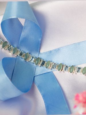 $179.00This elegant 92.5 sterling silver bracelet features marquise-cut aqua-green chalcedony and rectangular-cut blue topaz gemstones, each bezel-set in artisan-crafted silver links. The soft blue and… -