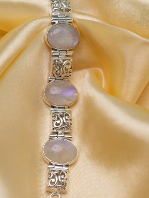 Regal Sterling Silver Bracelet – Rainbow Moonstone or Turquoise