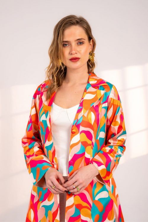 Modal Satin Silk with Abstract Pattern, Handcrafted, pockets, 38-40”