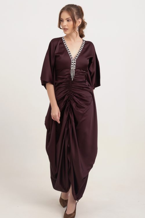 Luxurious Satin Silk, Hand-Painted pigment artwork, Maxi Gown, Fall