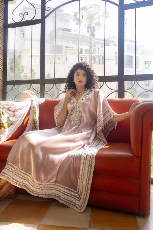 Organza Silk, Hand-Embroidered Mirror work, Party dress, 54-60”