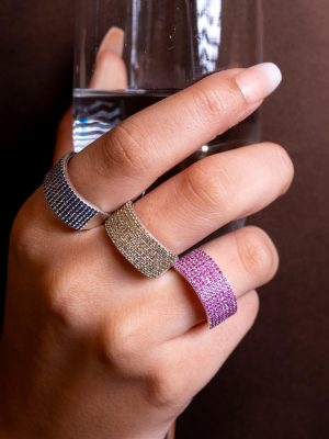 Filigree Friendship Band Ring in 92.5 Sterling Silver – Rhodium Finish with Blue or Pink Sapphire