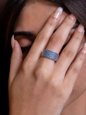 $229.00This Sapphire Eternity Ring features intricate micro-settings of sapphire on a sleek 92.5 sterling silver band in rhodium polish, offering a blend of contemporary design… -
