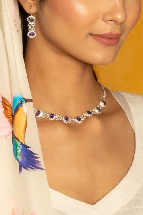 925 Sterling Silver, Amethyst, 18+2”, Handcrafted Choker Signature
