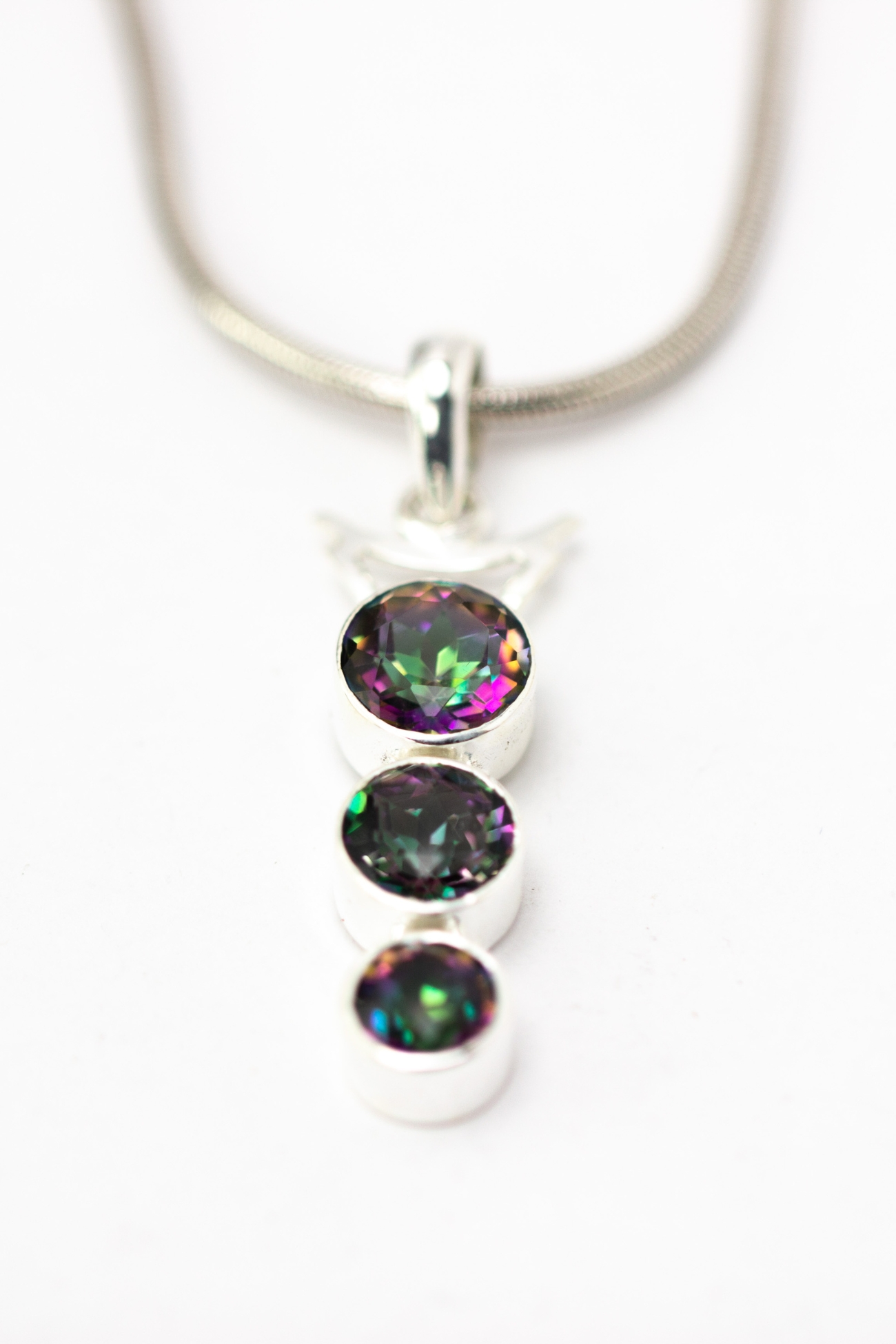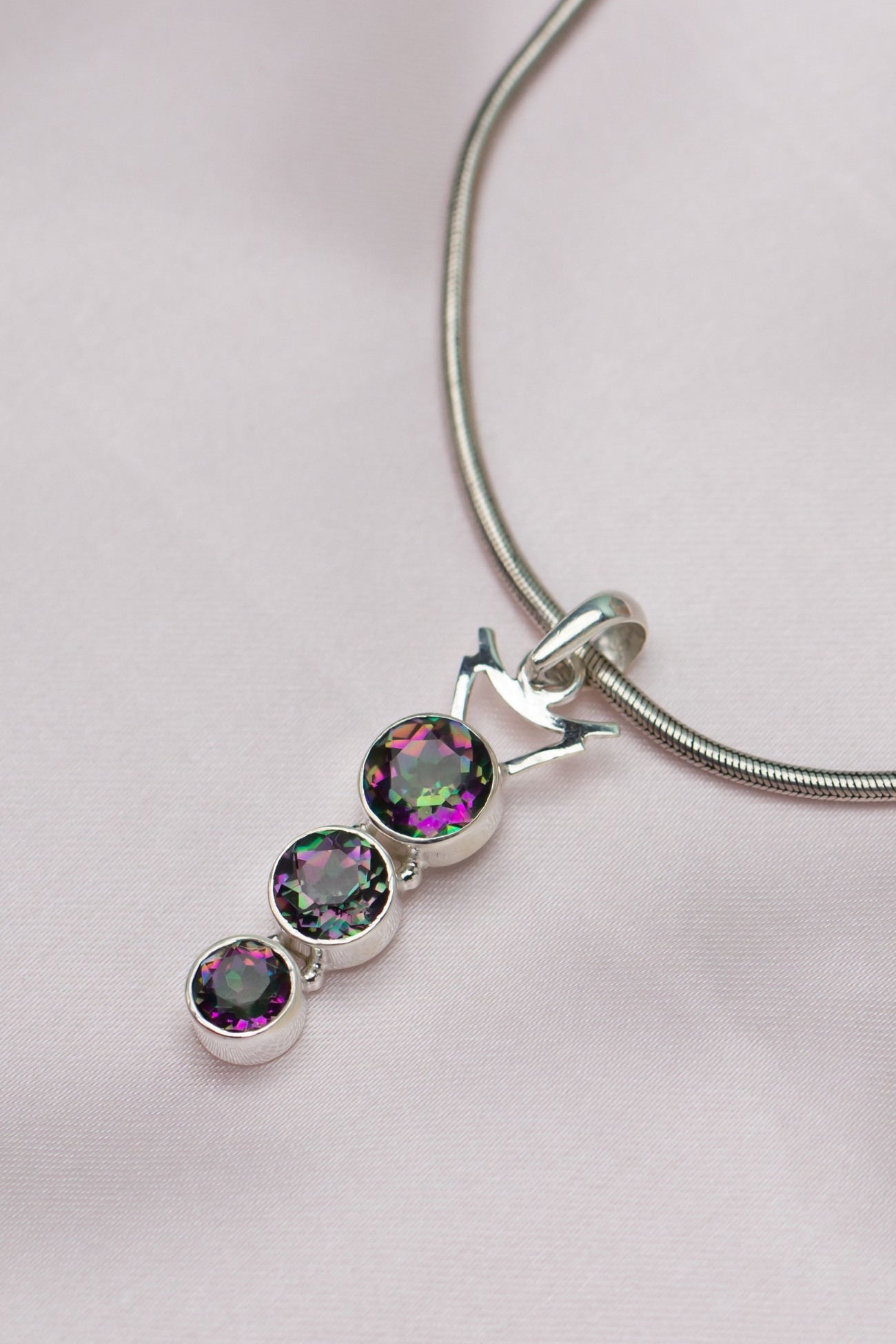 - Design & Aesthetic: This elegant pendant showcases the brilliance of Mystic Quartz, reflecting mesmerizing hues of deep purple, magenta, and pink—adding a radiant, ethereal charm to any look.