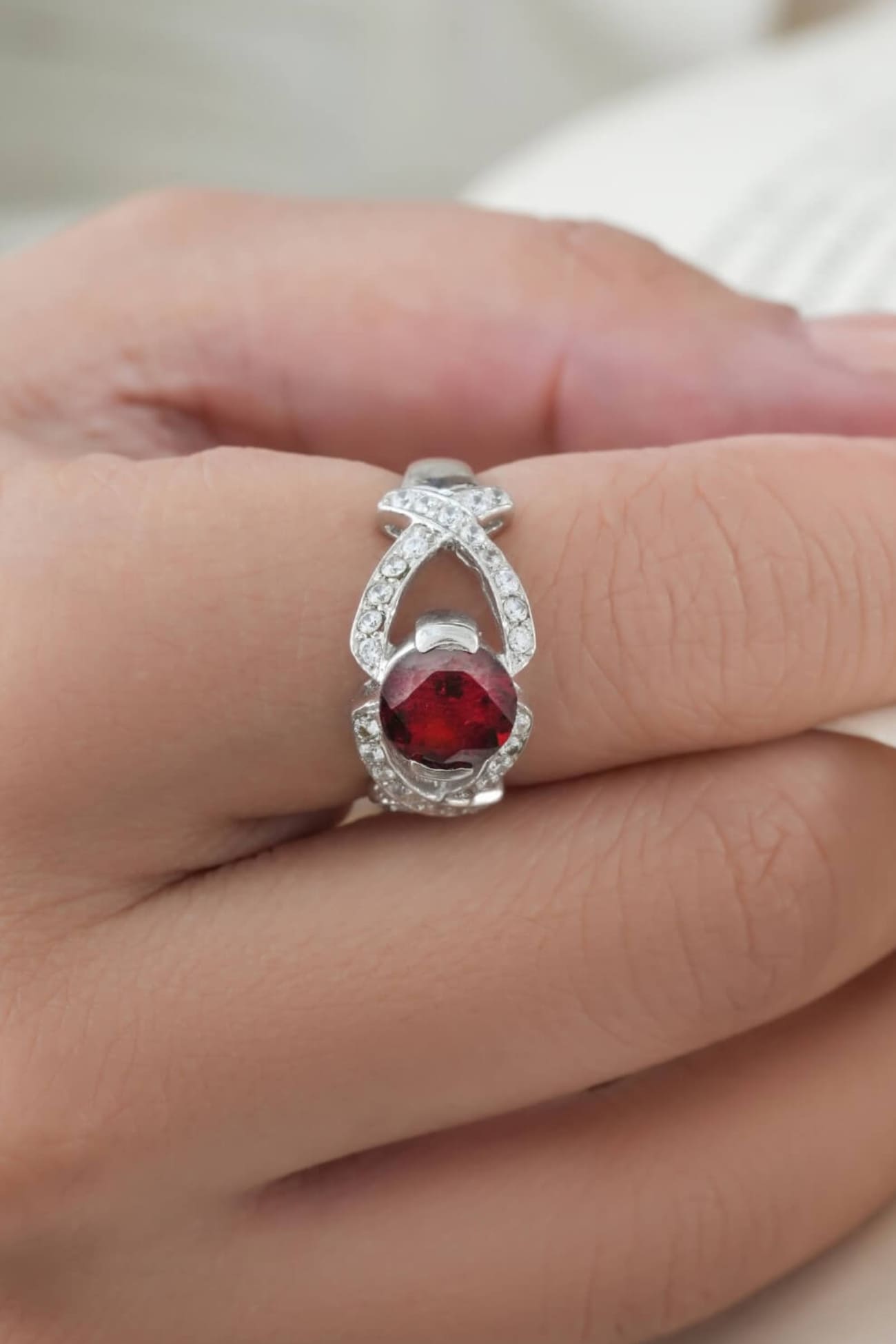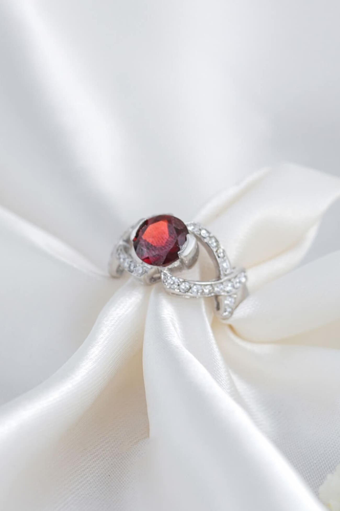- Striking Center Stone – Features a vibrant 8 mm round-cut Garnet or Peridot, Claw-set for brilliance and strength, ethically sourced and framed by high-grade cubic zirconia for a radiant, refined sparkle.