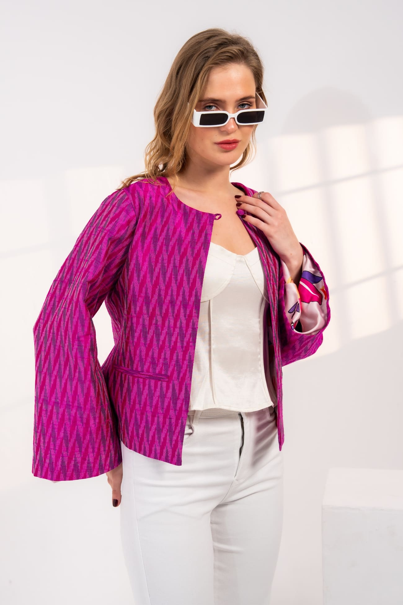 Rose Ikat Silk Kimono Short Jacket in Pink