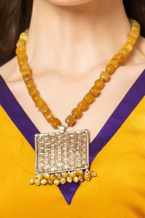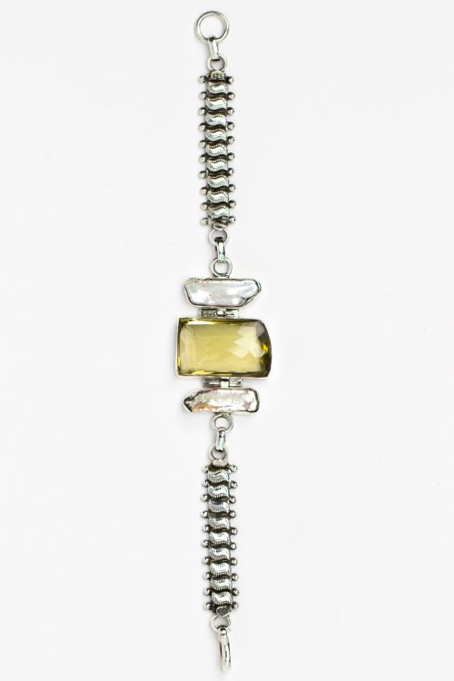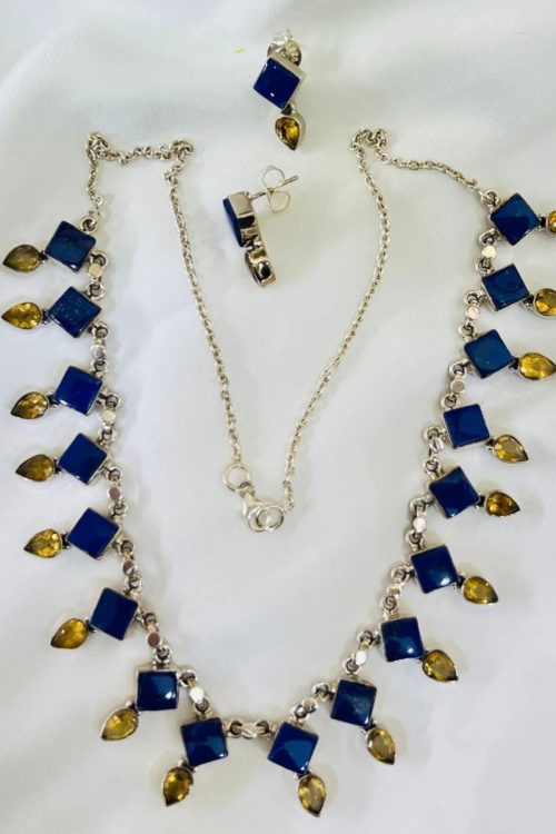 Sterling Silver, Citrine beads, 20+2”, Citrine cubes, Handcrafted basket weave technique Regal