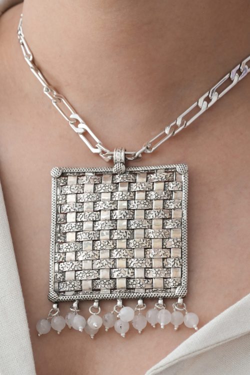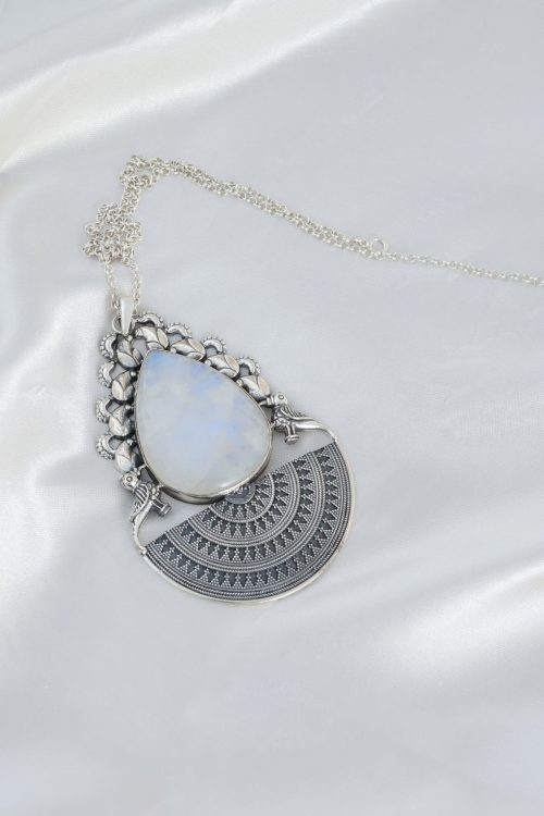 • Elegant Design: A delicately handcrafted circular disc with intricate motifs suspends a teardrop gemstone, combining artisanal charm with timeless elegance.