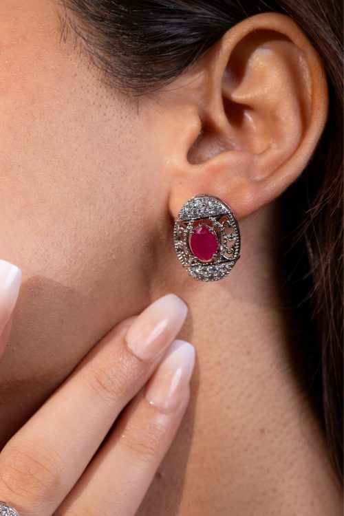 925 Sterling Silver with Gold Polish Variant, Ruby, 0.75”x1.25”, Handcrafted