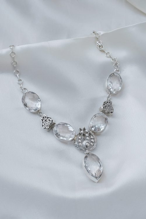 Ethereal Crystal Sterling Silver Filigree Necklace