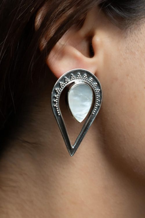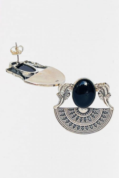 Available in a rich palette of semi-precious gemstones—Black Onyx, Turquoise, Green Onyx, Lapis Lazuli, and Carnelian—each pair blends traditional artistry with a modern silhouette. The fluid movement and thoughtful detailing make them perfect for both statement occasions and everyday elegance.
