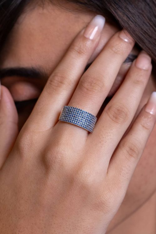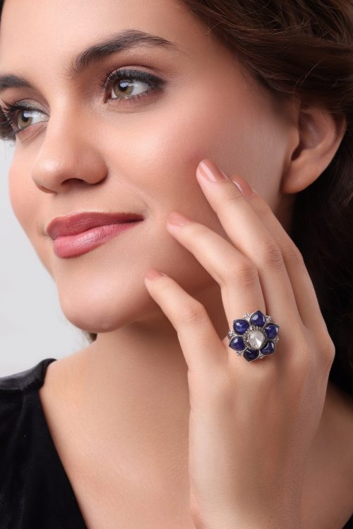 925 Sterling Silver with Rhodium polish, Handcrafted, Art Inspired, Diamond, Sapphire
