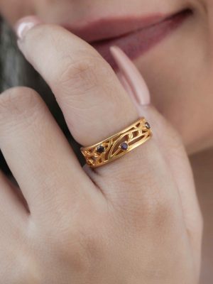 Filigree Band Ring – Blue or Pink Sapphire